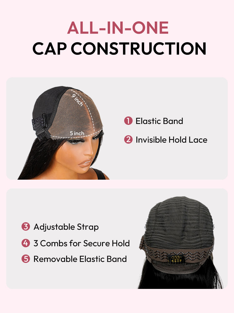 Achieve a sleek and natural look with this Black Straight 5x9 Invisible HD Lace Wig. Made from 100% human hair, this wig features a smooth straight texture in a timeless natural black shade that blends effortlessly with any style. The upgraded 5x9 HD Swiss lace closure provides an extended parting space and a seamless, invisible hairline for maximum realism. Designed with a medium-size cap, it ensures a secure, comfortable fit. With its lightweight construction and easy installation, this wig is perfect for both everyday wear and special occasions.